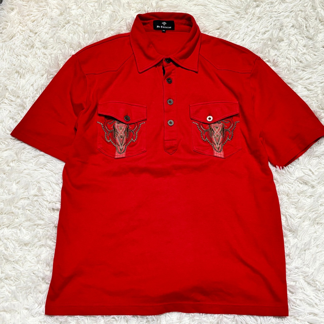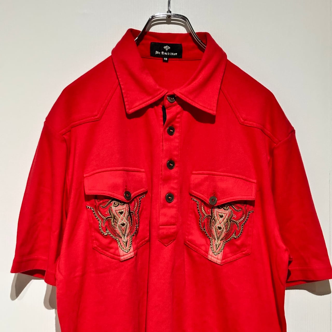 商品名: レトロポロシャツ 民族刺繍 ライダース