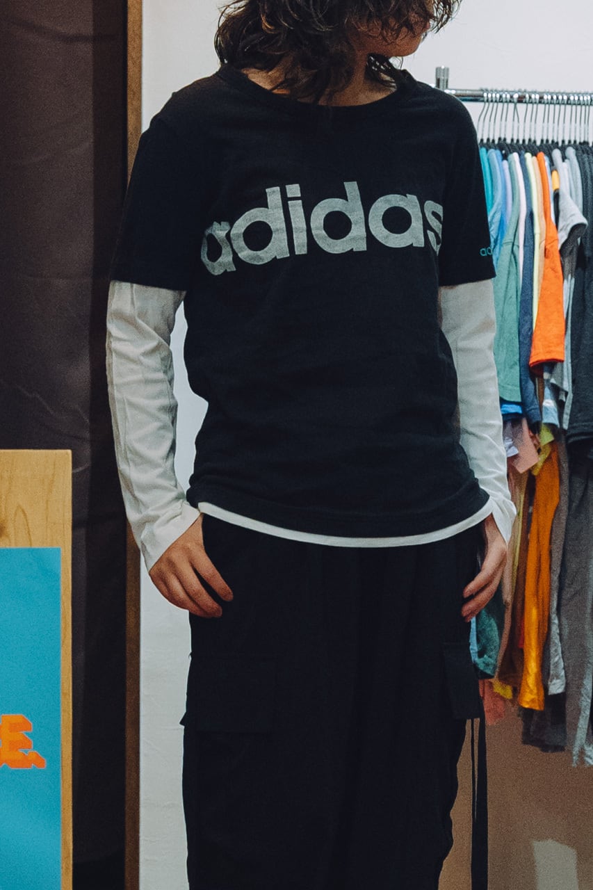 商品名:ロングTシャツ ロンT 重ね着風 ロゴドン